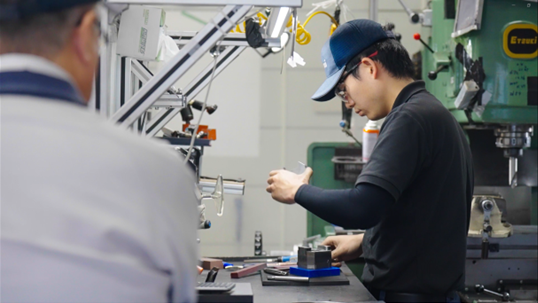 技能五輪全国大会は1963年から始まり、23歳以下の技能者を対象とした技能レベルの日本一を競う、技能競技大会となるため、選手となる社員が2回挑戦できるよう、2年間の専任とし、訓練を行っています。競技種目は、42種目あり、全国から選抜された1,000人以上が出場していますが、当社は、フライス盤加工の種目に挑戦しています。